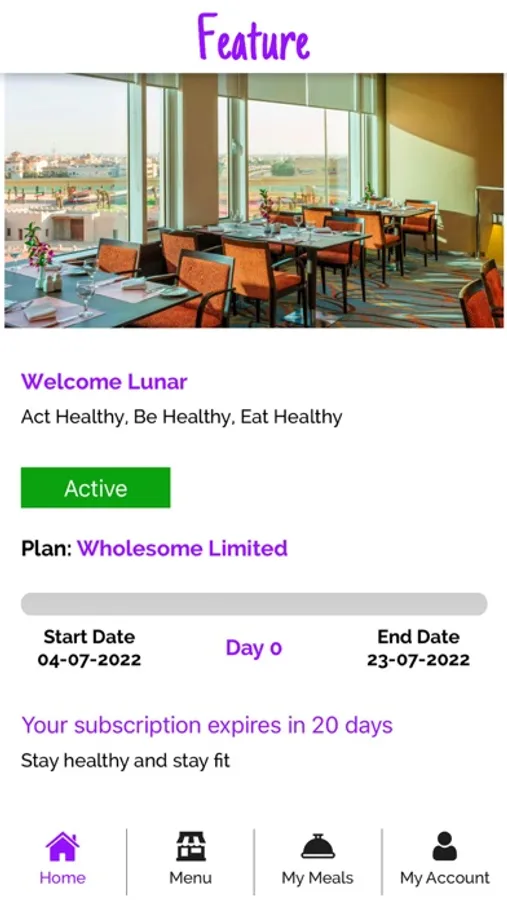 Feature is a Kuwait-based company that has taken an initiative to provide healthy and hygienic food in Kuwait. The app has many features which keeps customer up to date with their diet food cycle.