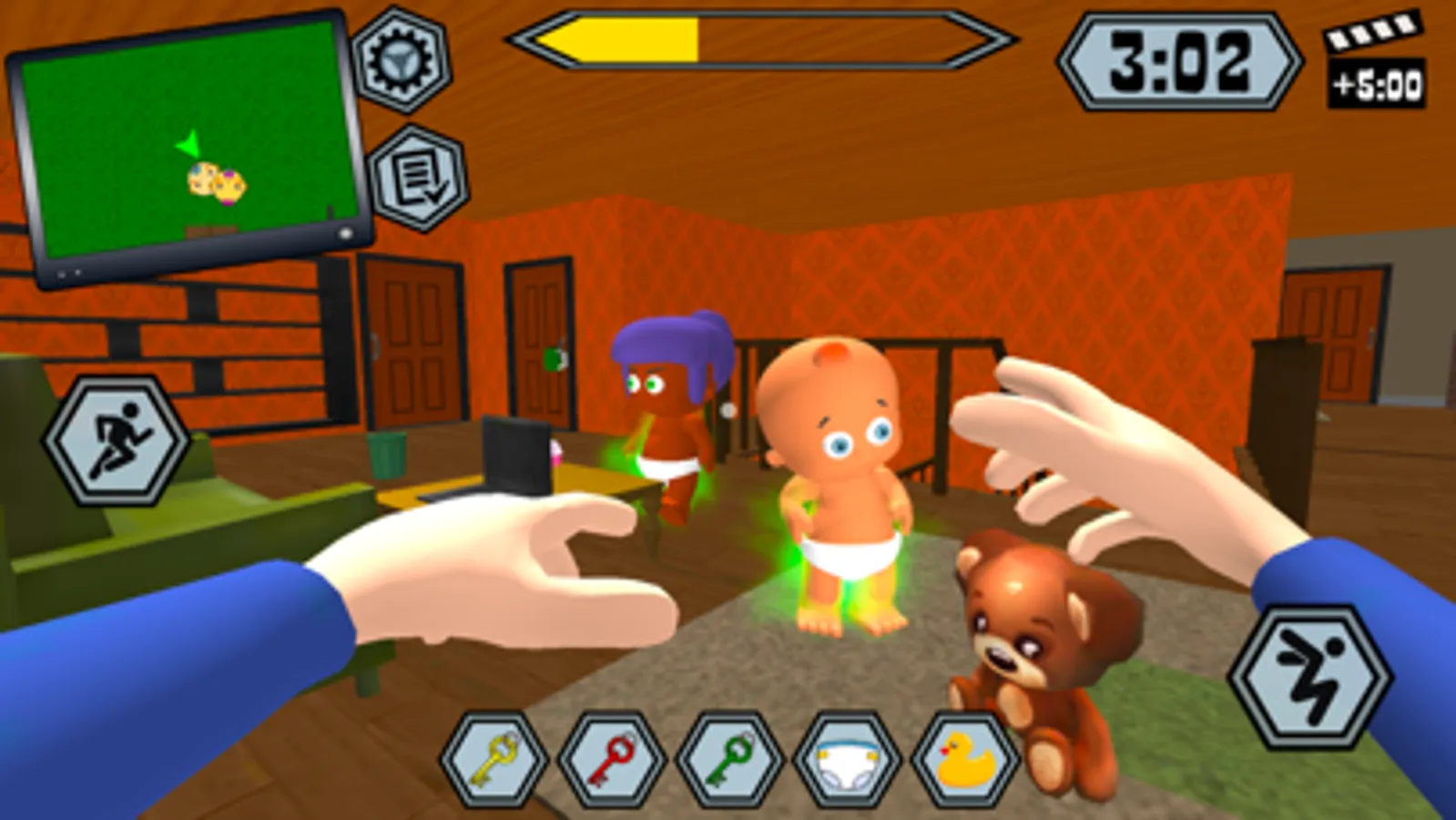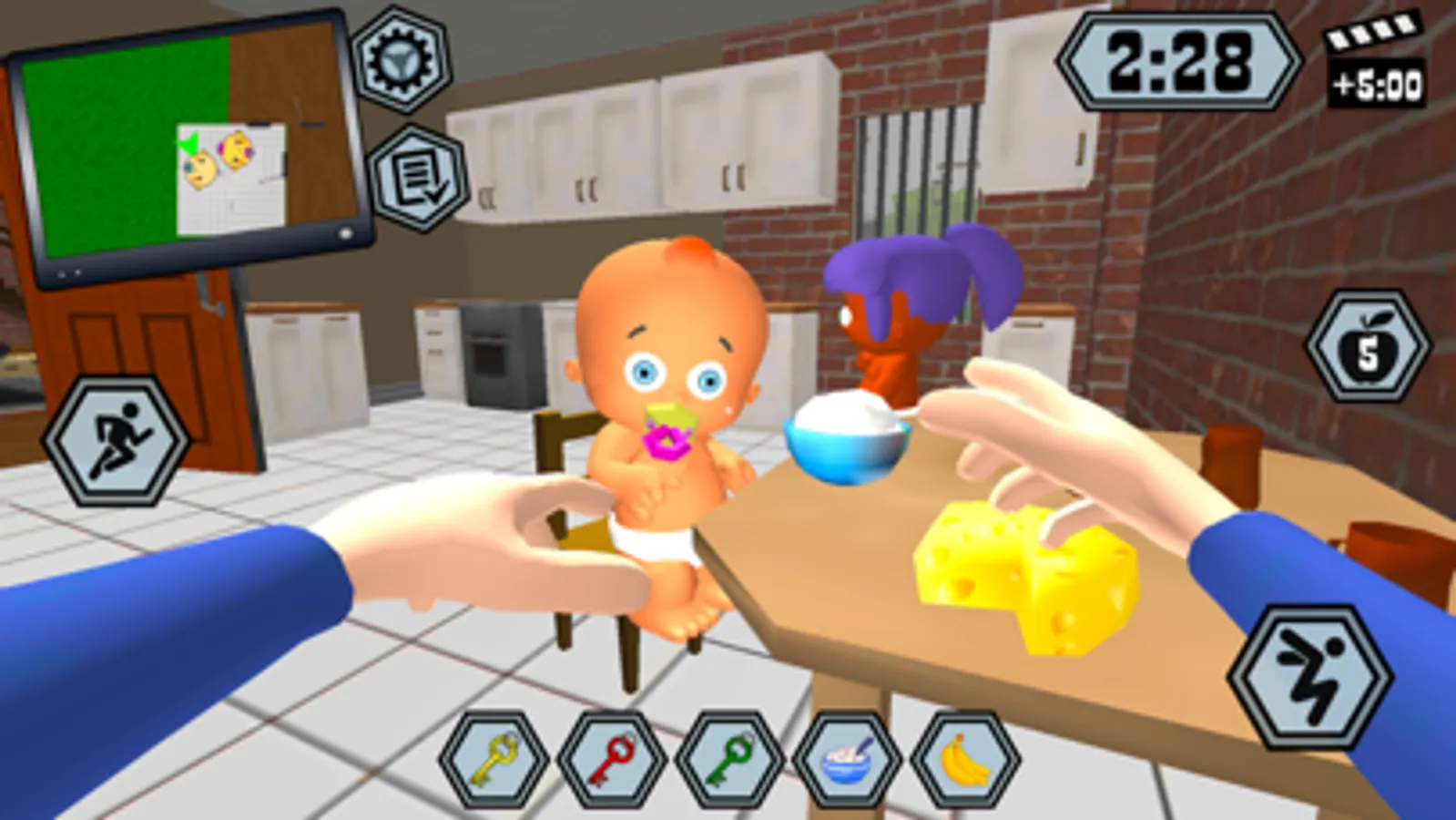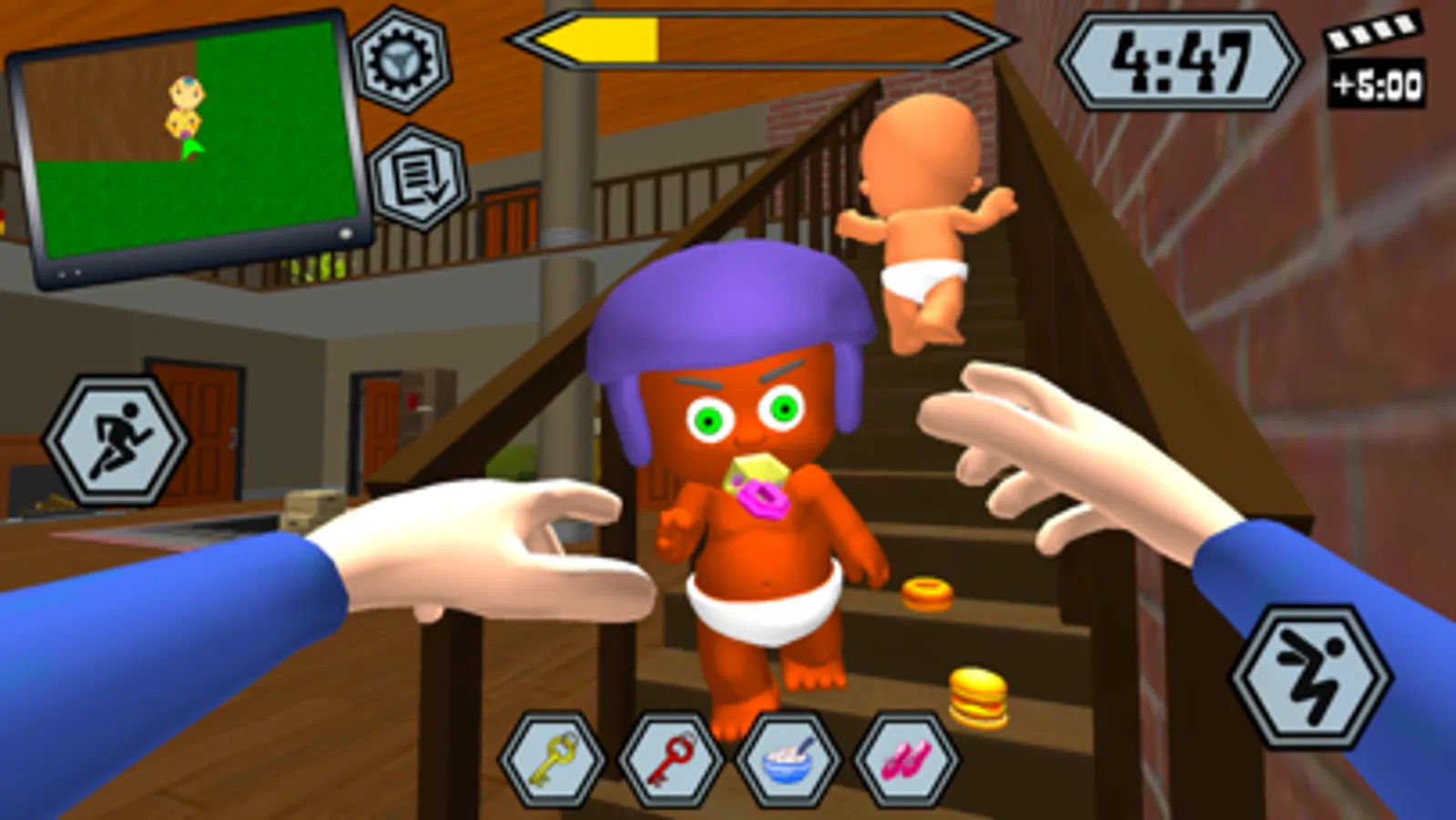 Your neighbor is about to go on vacation. He asked you to look after his children. Complete various missions for a certain time and make sure that the baby remains happy.