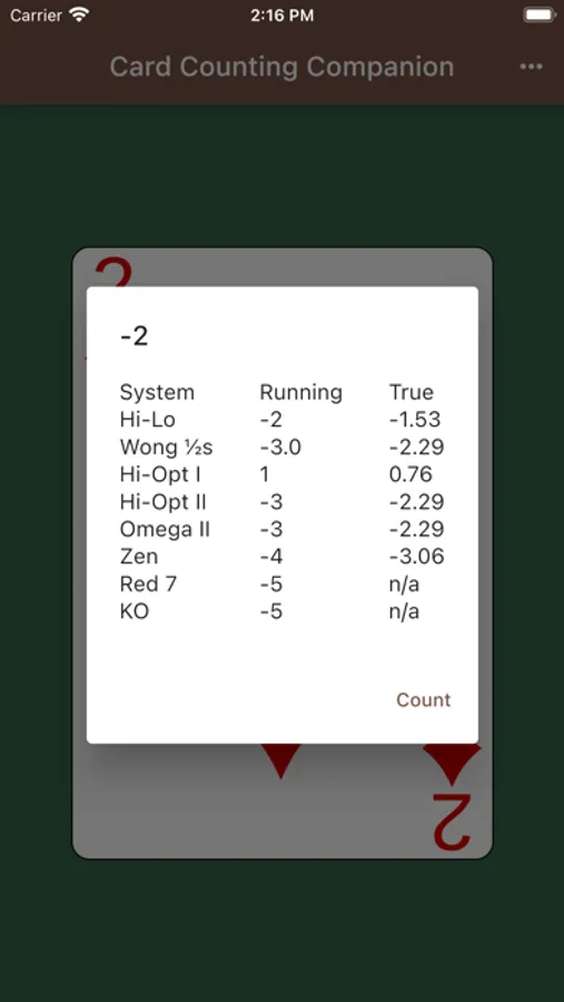 Card Counting Companion is a free, ad-free, and open-source app built in Flutter that helps you practice counting cards without a physical deck. The app simulates real decks of cards, that you can count and check your count, whenever & wherever.