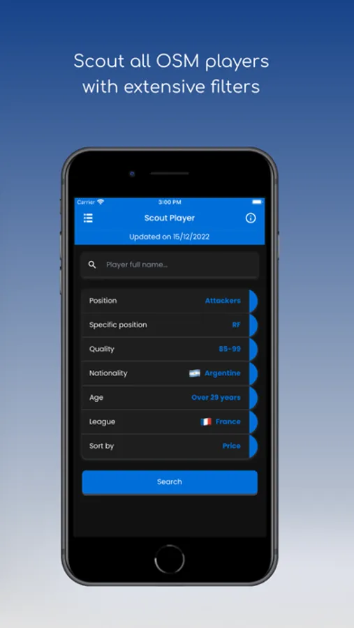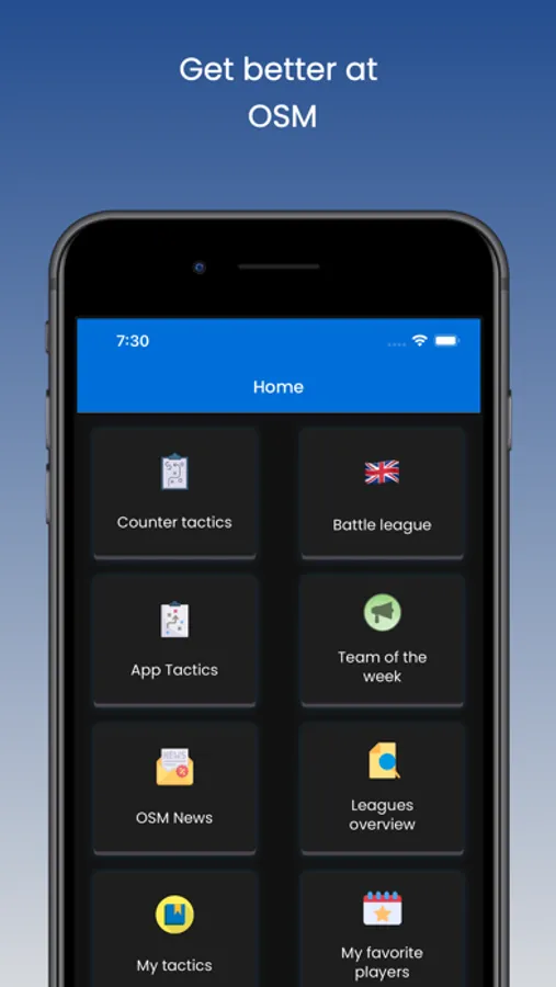 Elevate your OSM game with OSM Tactics! Our app is the ultimate tool for scouting players with extensive filters and finding counter tactics for the most used formations in the game. Stay ahead of the competition by staying informed on the latest OSM leagues, teams, and players. Download OSM Tactics today and take your game to the next level!
