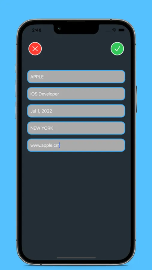 -Tap the blue floating button to fill out the job applied form sheet