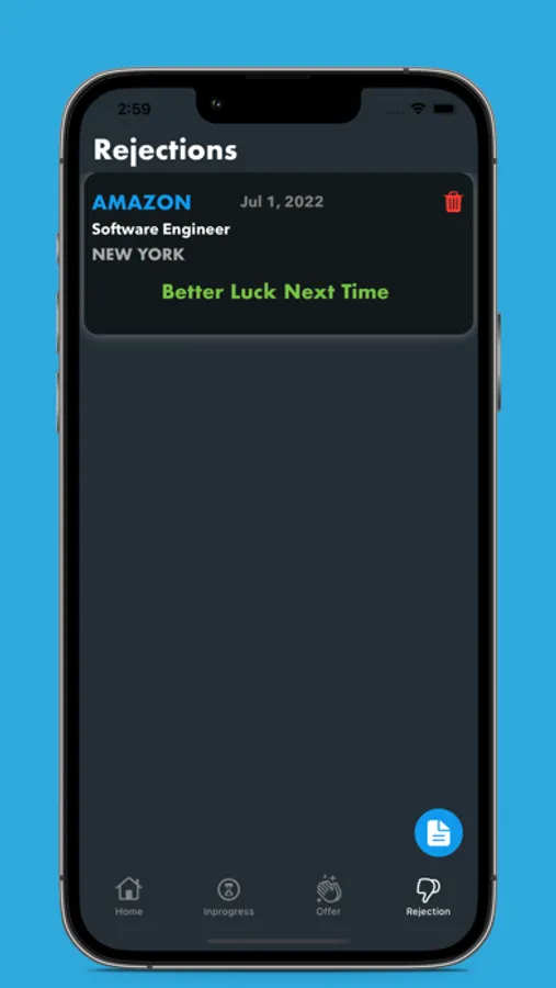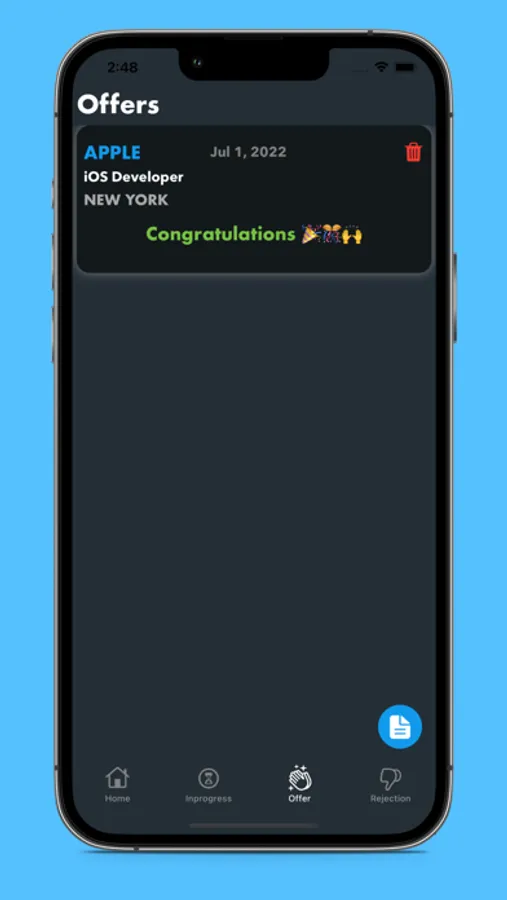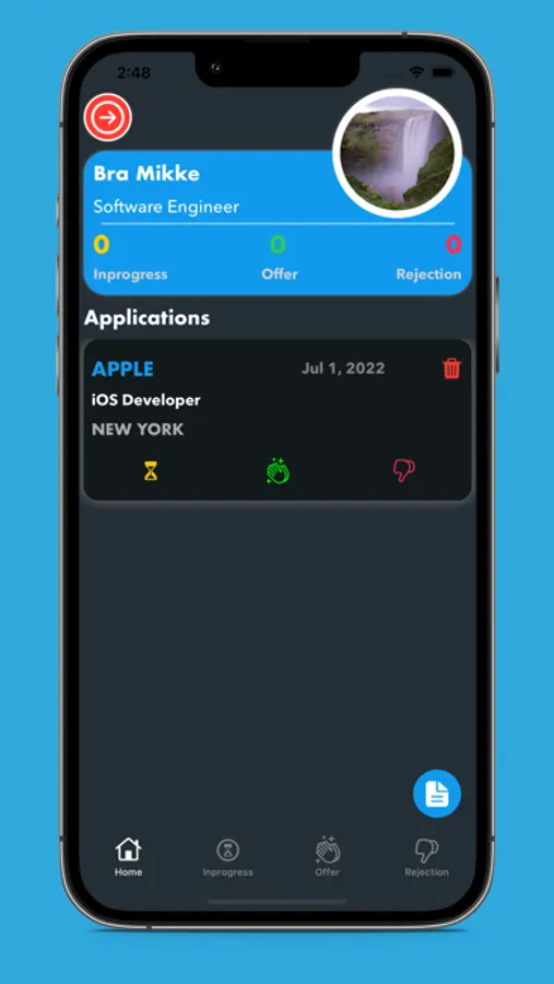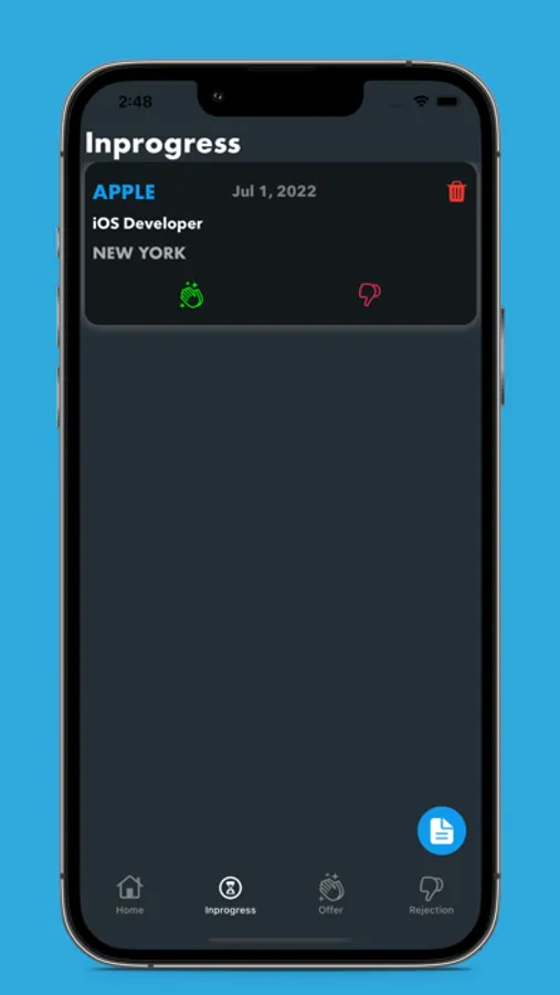 For example: If you hear back from a recruiter to schedule an initial phone interview after submitting your application, tap the " Yellow hourglass button" to put your application status to Inprogress. Through this process, only two things can happen: either you get an offer or rejection.