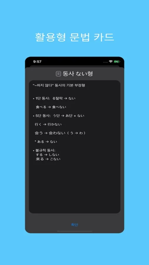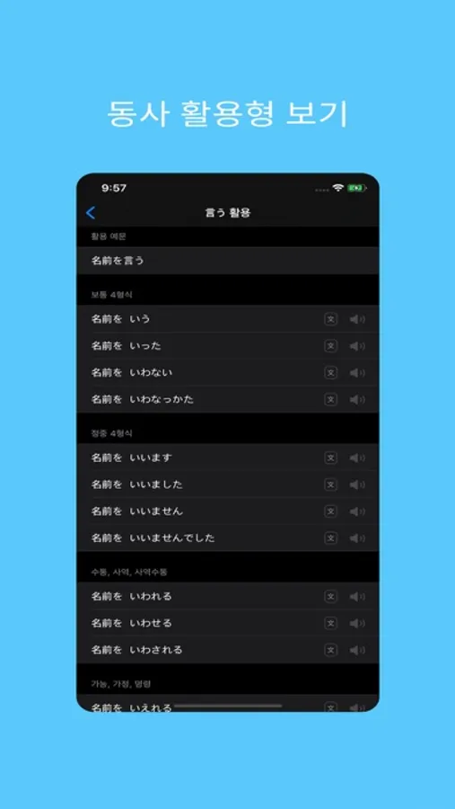 동사의 주요 활용형을 한눈에 보고 연습/체득 할 수 있도록 돕는 것이 핵심 기능입니다.