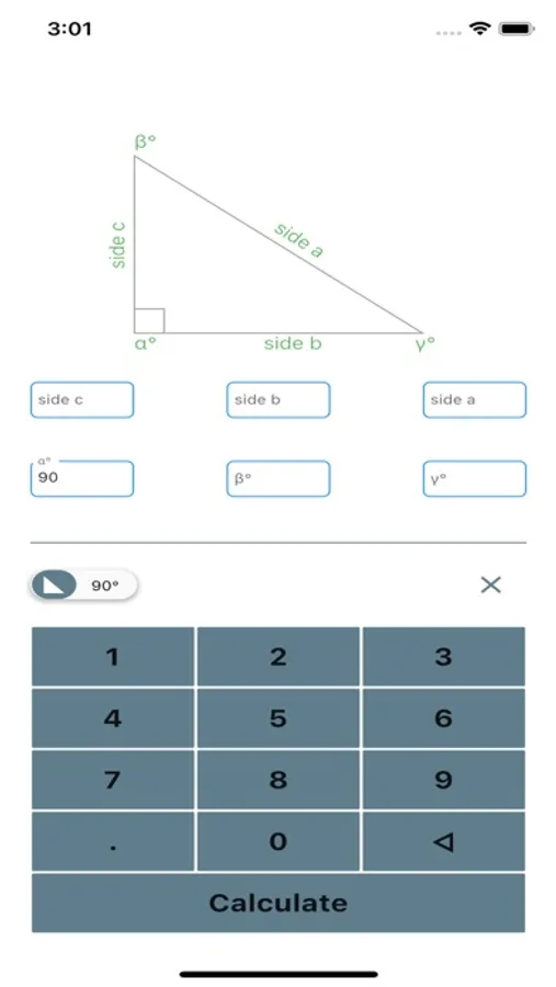 Do you need to check it if a corner has 90 degree? Just take a measuring from the corner to some point on the first side, then do the same on another side and then, take a measuring between these points and pull all 3 measuring in to this app, the app will calculate all angles for you.