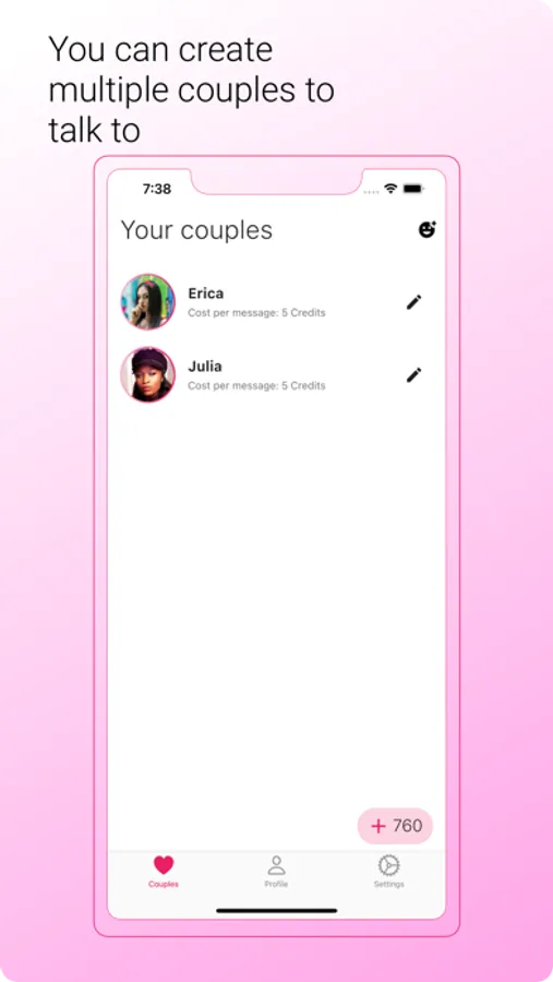 In CoupleAI you can create your virtual girlfriend or boyfriend to talk without limits.