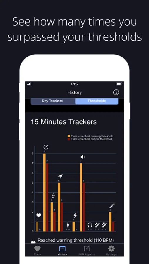 See how many times you surpassed your current boundaries on any previous day. See if it improves over time and compare it with your well-being.