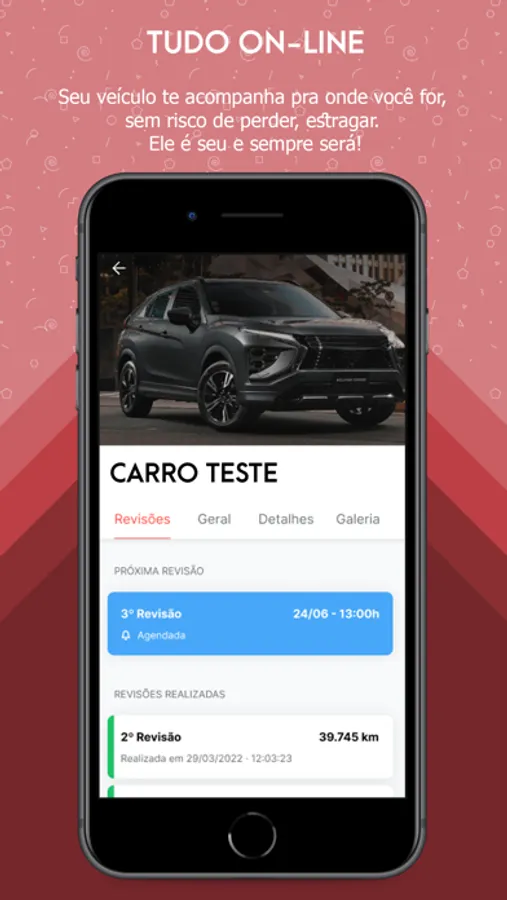 O aplicativo consiste em informar o cliente da concessionária todo o histórico dele com a concessionaria, informativo de Recall pela montadora, datas de revisão, contato com consultor e vendedor de peças, fale com o gerente, podendo também visualizar as NFe emitidas, Avaliações, Ordem de Serviços, Orçamentos e Propostas de Vendas realizado dentro da concessionaria.