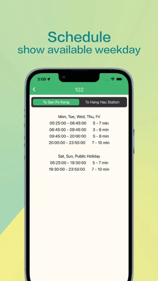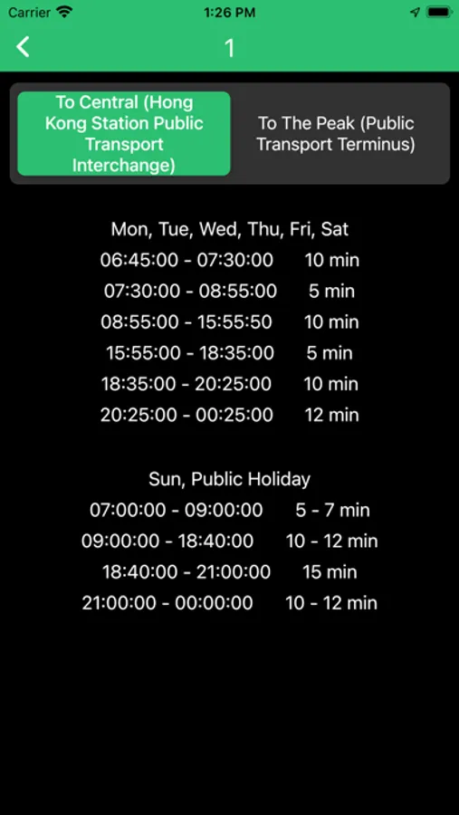 時間表頁面則清楚顯示路線的服務日及開出間隔,以便用戶查詢非繁忙時段及首尾班車開出時間。