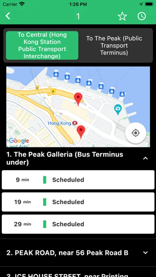 Minibus Timer provided all of the HK green minibus route info and estimate arrival time.