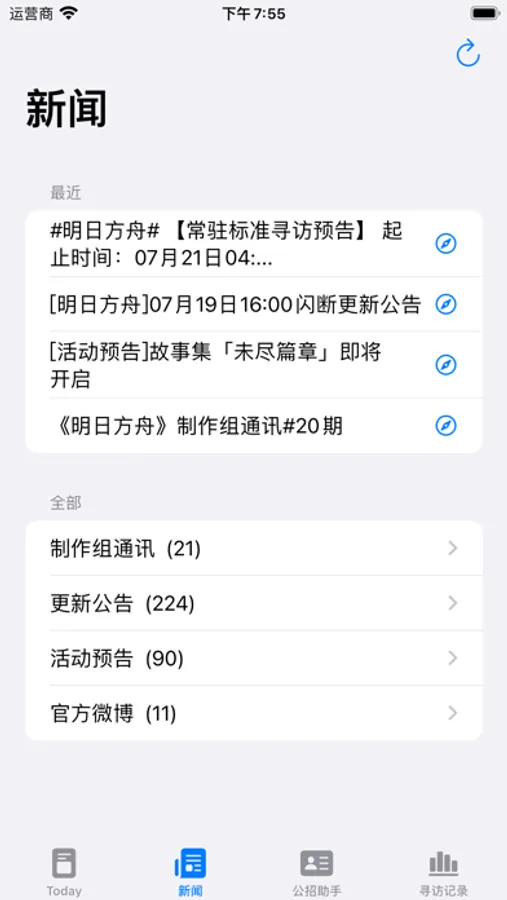 推送游戏新闻,包括微博新消息和制作组通讯。