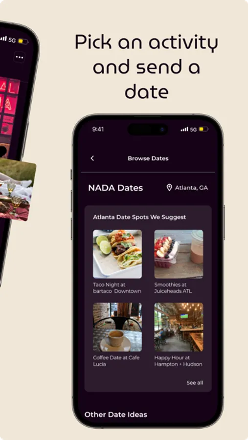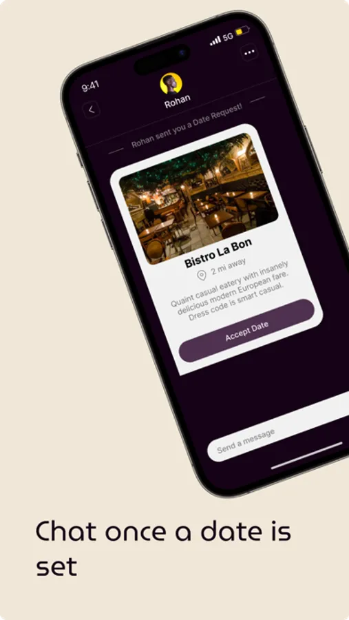 On Nada, Speed is crucial! Once you start to chat with a match, you will get to see a list of locations near you where you can offer your partner to go on a date; it could be a cafe or a restaurant; you have all the options to Choose the perfect date night.