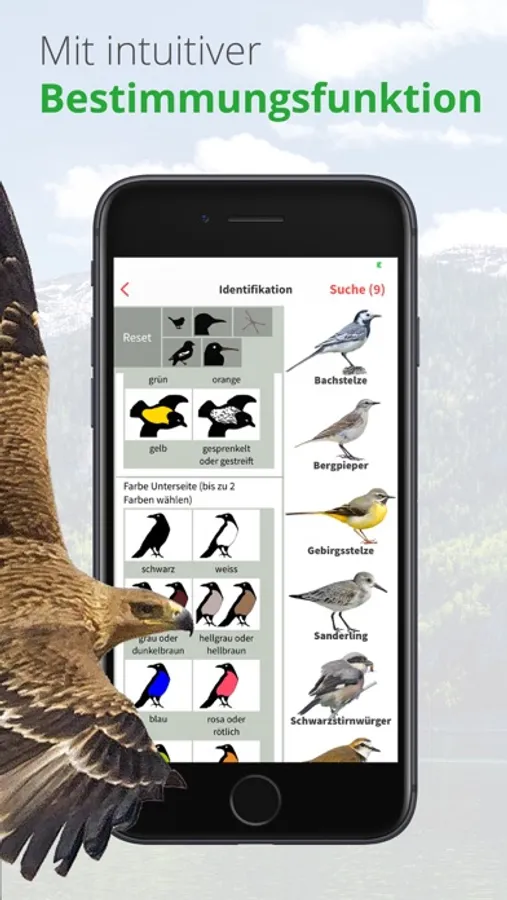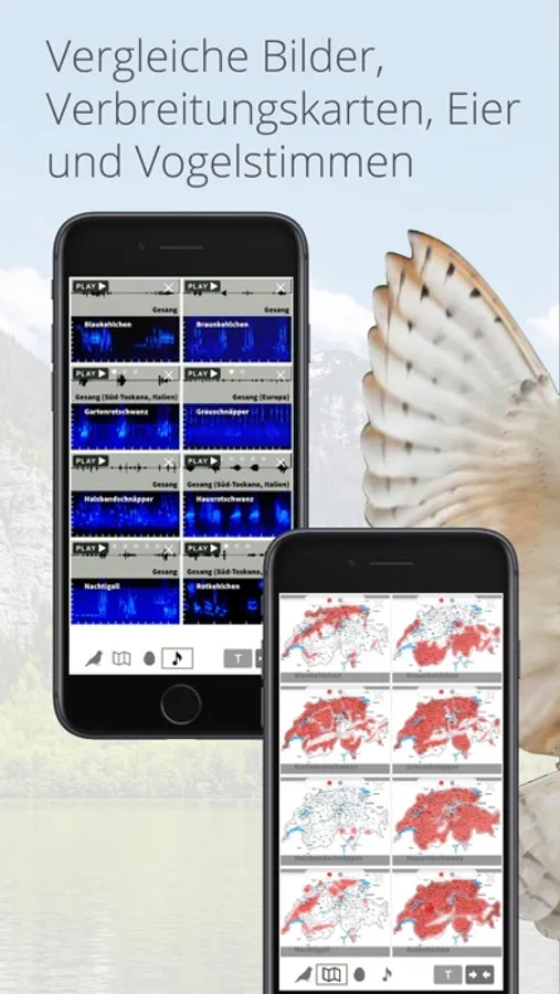 • Funktion zum Vergleich von bis zu 8 (iPad bis zu 16) Vögeln