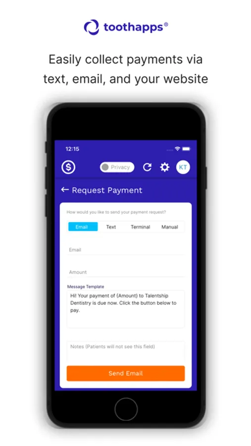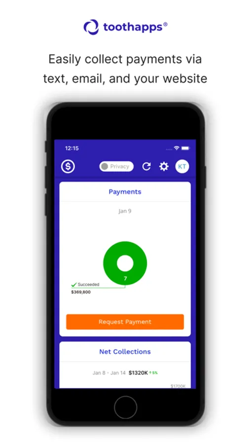 * Easily collect payments via text, email, and your website