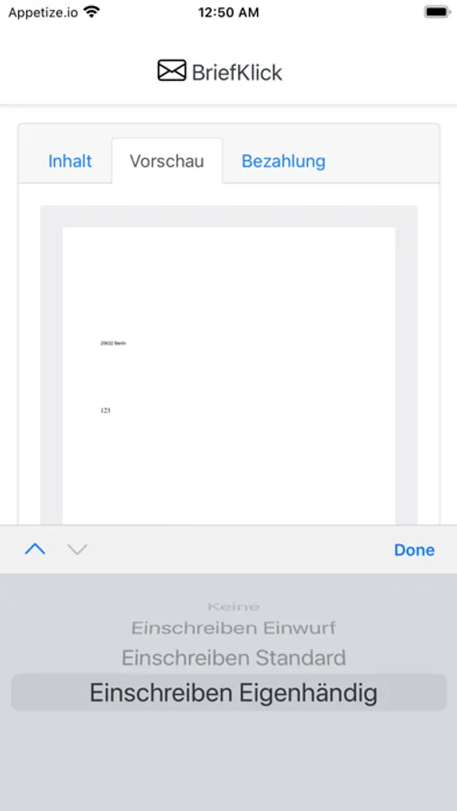 Mit der BriefKlick App können Briefe geschrieben und automatisch per Post zugestellt werden. Optional auch mit Einschreiben oder Farbdruck.