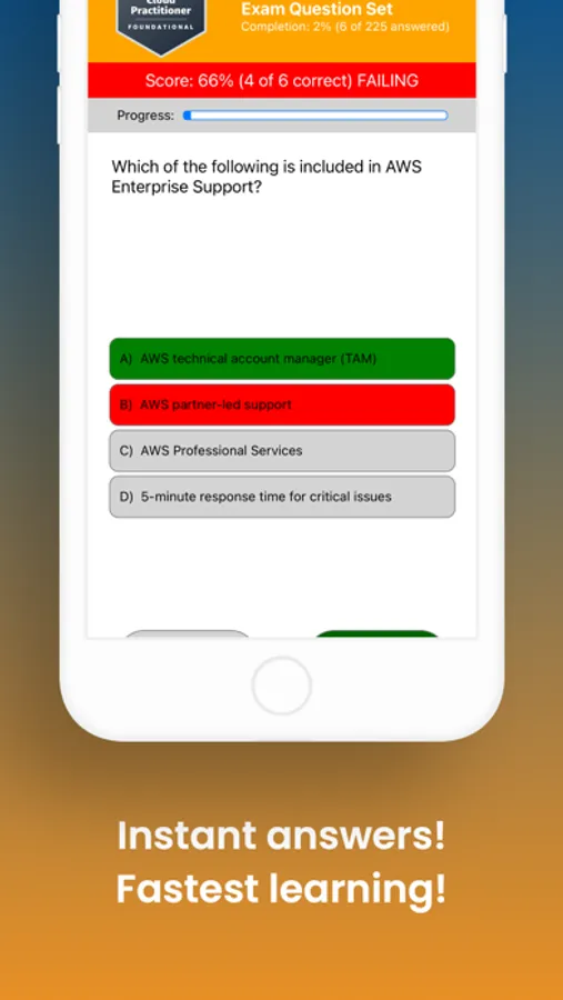 The correct answers are shown instantly for each question, so you learn straight from your mistakes.