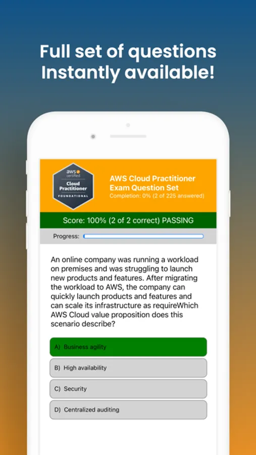 This questions set is a realistic preview of the AWS Cloud Practitioner Test.