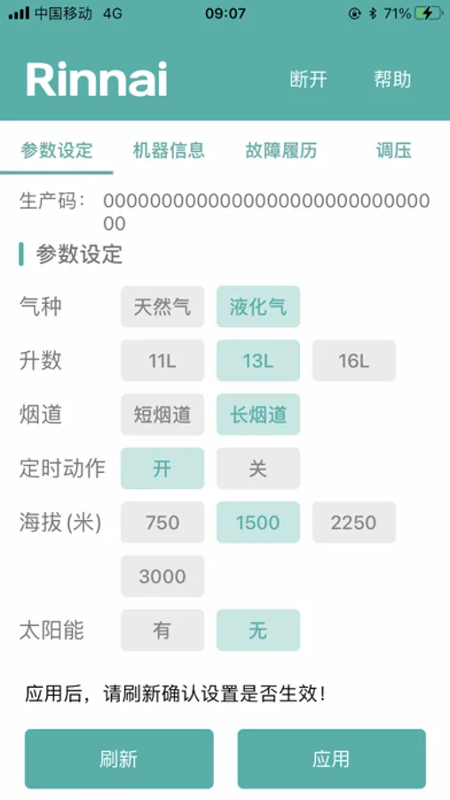 当林内设备需要调整参数时,可通过此App灵活设置调整