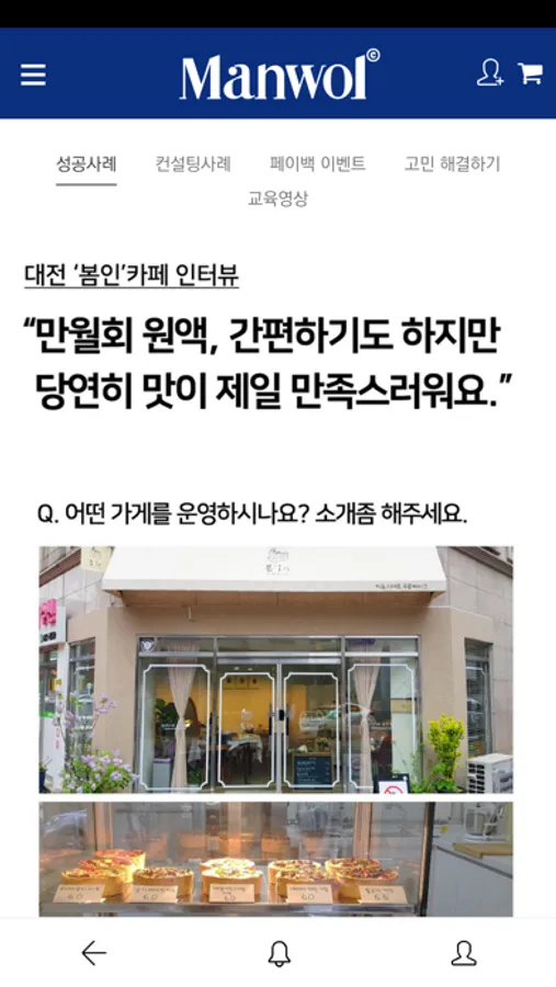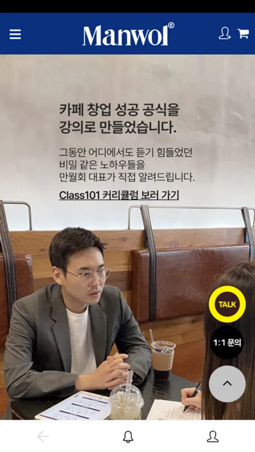 커피숍 원부자재 발주, 컨설팅 및 강의 수강, 각종 이미지 구매, 응용 레시피 열람 등의 서비스를 제공하고 있습니다.