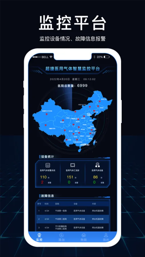 超捷-医用气体监测云平台,旨在为医院、医用气体供应商及医用气体设备供应商提供在线监测服务,系统可将医院授权后的医用气体数据实时展示在移动APP及PC网站,可方便用户及时获取医用气体数据,及时跟进气体及设备状态,方便快捷的服务医用气体用户。