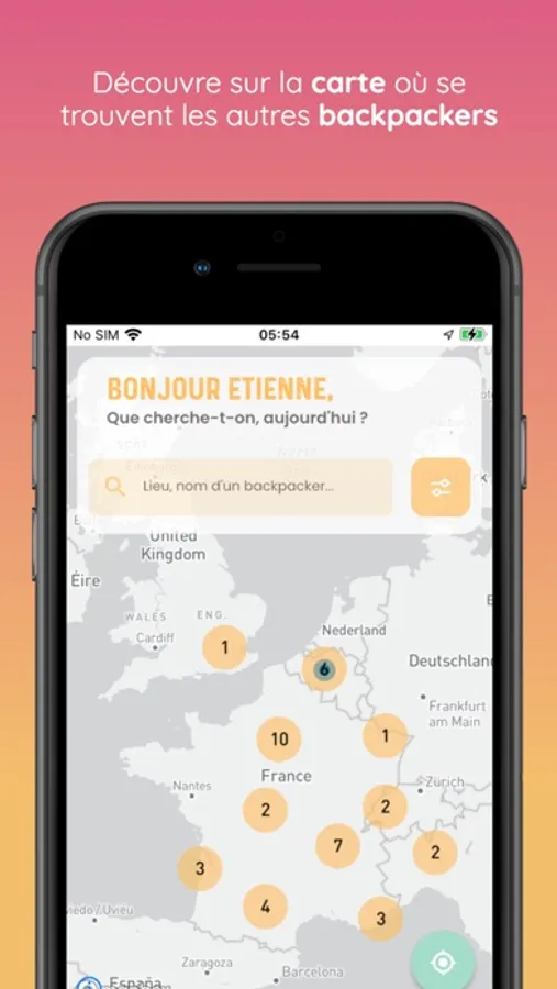 Découvre sur la carte où se trouve les autres backpackers, visualise leur profil et contacte-les !