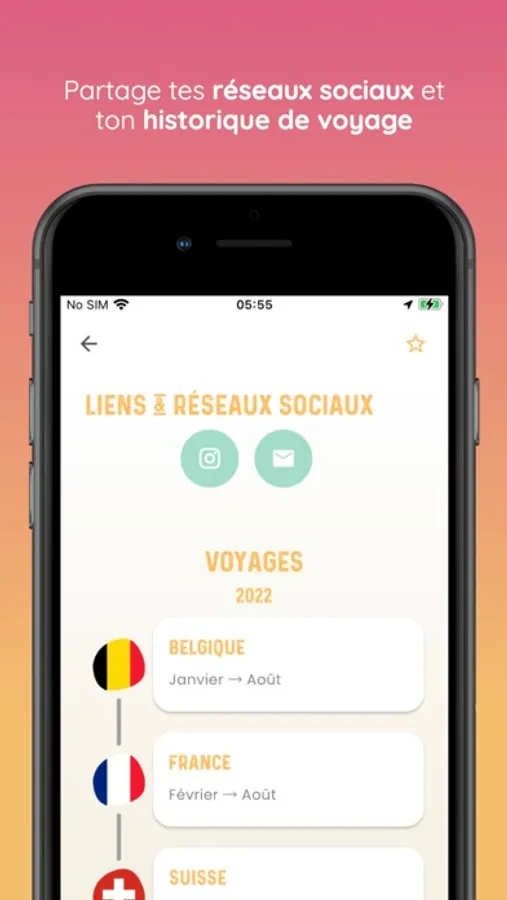 Si tu le désires, Backpackmeet crée automatiquement ton historique de voyage, basé sur les endroits où tu l'utilises. Tu peux même rajouter tes voyages précédents. Affiche ensuite fièrement ton itinéraire sur ton profil et découvre celui des autres ! Quels sont vos pays en commun ?