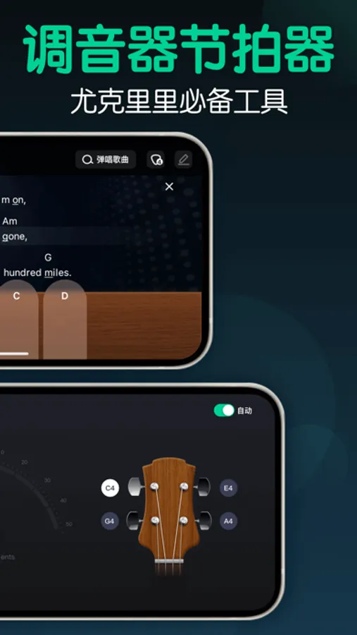来音尤克里里功能全面,丰富的弹唱曲库,免费调音器节拍器、真实模拟器专为初学者、高级乐手和专业音乐人打造,是学习尤克里里弹奏必备工具