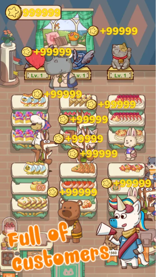 As long as you work hard, there will always be a steady flow of customers. When you have enough money, you can unlock new game scenes!