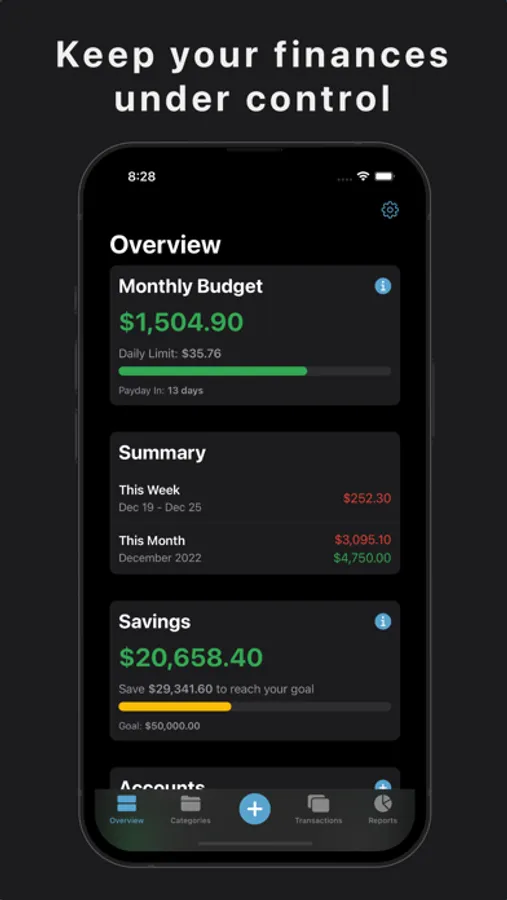 Our comprehensive reports provide a detailed overview of your spending habits. Filter your expenses by week, month, or any specific period of your choice, and focus only on the accounts you're interested in.