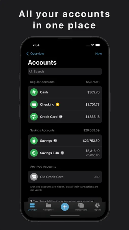 Simplify your life by aggregating all your financial accounts in one seamless platform. From cash, bank accounts, savings accounts, to credit cards, keep track of everything with MoneyTime.