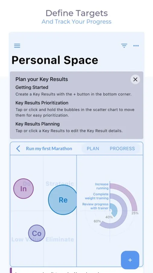 The Y Principle helps you to get your focus back on the things that matter. Based on Theory X / Y by Douglas McGregor and OKRs (Objectives and Key Results) by Andy Grove, the Y Principle App helps you prioritize the objectives you want to achieve and define the key results you need.