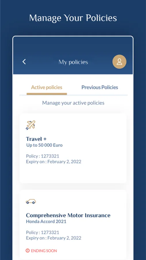 3. Manage all your insurance policies such as car, life, home in simple clicks