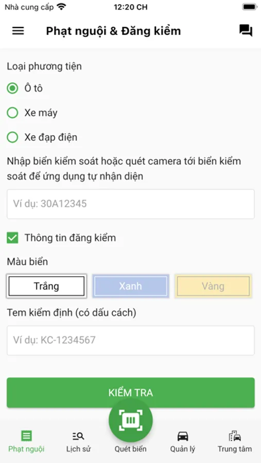 - Kiểm tra thông tin đăng kiểm phương tiện