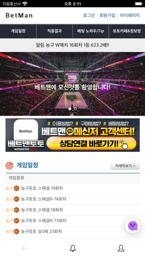 배트맨토토(betman)는 축구, 야구, 농구, 배구, 골프, 미식축구, 아이스하키, e스포츠, 격투기, 올림픽, 아시안게임, 월드컵 등 전 종목의 경기정보와 프로토 정보를 확인할 수 있는 국내 유일의 '스포츠 통합 분석 및 구매 서비스' 플랫폼입니다. 뿐만 아니라 실시간 경기 상황을 확인함과 동시에 이루어지는 분석 과정을 통해 특정 팀을 응원하거나 경기예상 또는 경기구매를 진행 할 수 있으며, 상세 경기기록과 리그 별 팀 순위도 정보방을 통해서 확인할 수 있습니다.