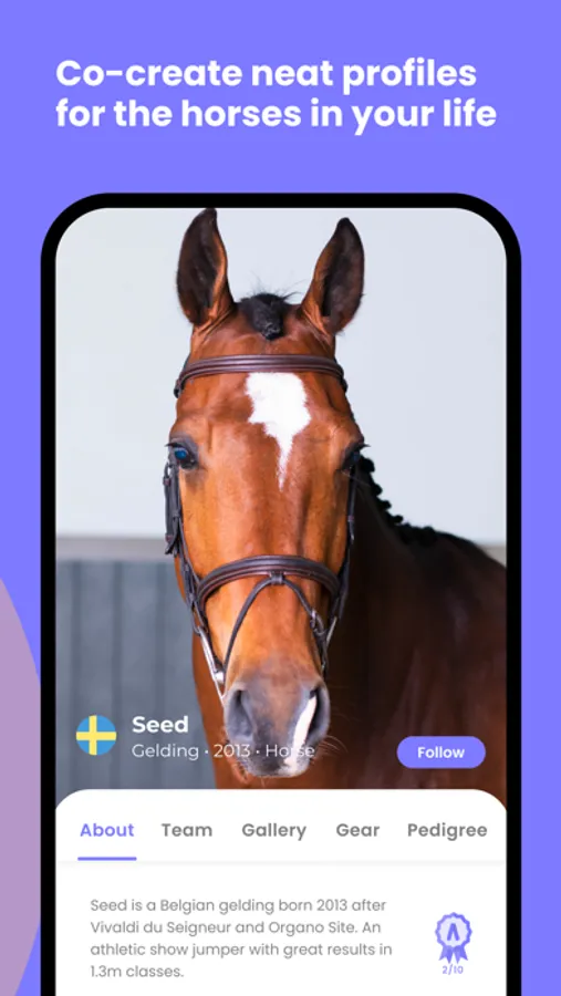 Floccs mission is to make every horse come alive digitally. Regardless of discipline or background, there’s one thing that all people engaged in sport with horses have in common - current and present connections to horses. That's why horses have their own independent profiles that can be followed over time. Make sure to build a valuable profile and history of your journey within the sport. Let's get started!