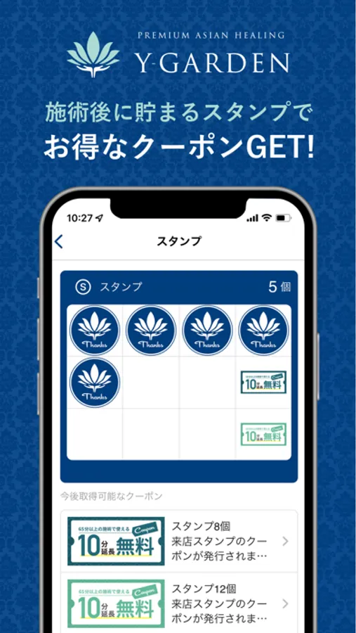 ご来店スタンプをためるとお得なクーポンが発行されます(ご利用条件がある場合がございます)