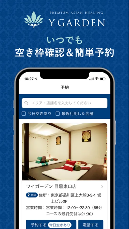 いつでもお手元のスマートフォンからご希望のお時間帯のチェック・ご予約が可能です。