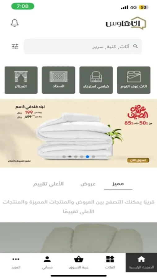 In House mobile application, get comfort and luxury in your home, we provide everything your bedroom needs, with all sleeping accessories.