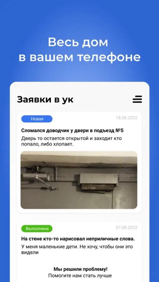 Подавайте показания, отправляйте заявки, участвуйте в жизни вашего дома с помощью голосований.