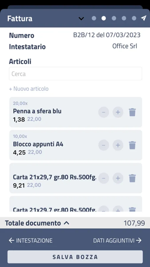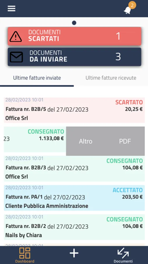 Accedendo con le tue credenziali Express Fattura Self puoi visualizzare e salvare in formato pdf le fatture elettroniche emesse e ricevute, visualizzare le ricevute delle fatture che hai inviato, compilare e inviare nuove fatture, configurare la ricezione di notifiche per ogni nuova fattura arrivata e/o nuova ricevuta arrivata.