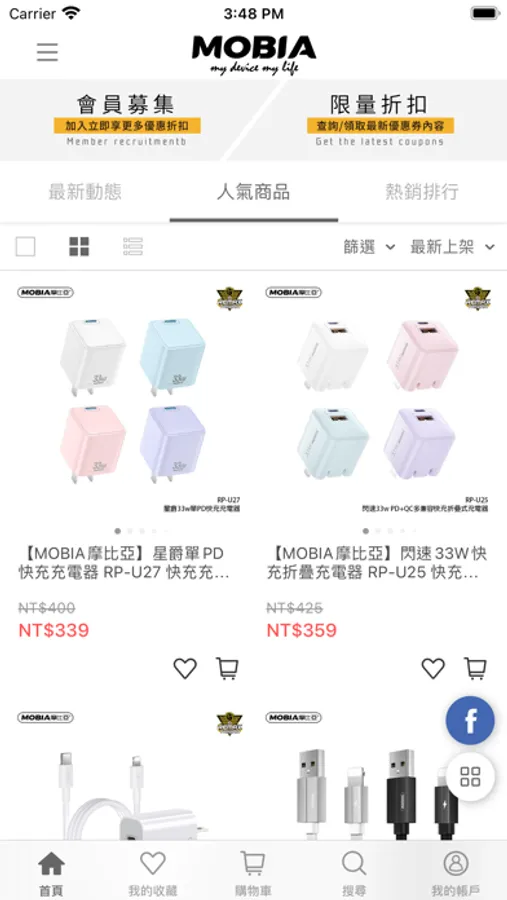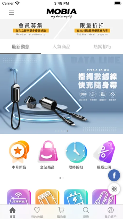 提供精選3C與科技生活商品,包含行動電源、傳輸充電線、藍牙耳機、喇叭音箱、手機支架、保護貼及智慧生活等官方授權熱門產品販售,打造優質的網路購物環境,嚴選每一款值得推薦的好物,嚴格為您把關。在什麼都漲的當下,將陸續推出新品與各種預購/團購/箱購的組合活動,更有不定期的好康優惠,打造優質有保障的購物體驗!