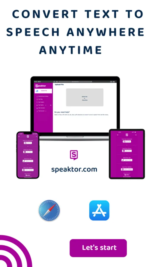 You don’t need anything special to access SPEAKTOR. Just upload a text or book that will be read aloud wherever and whenever you want.