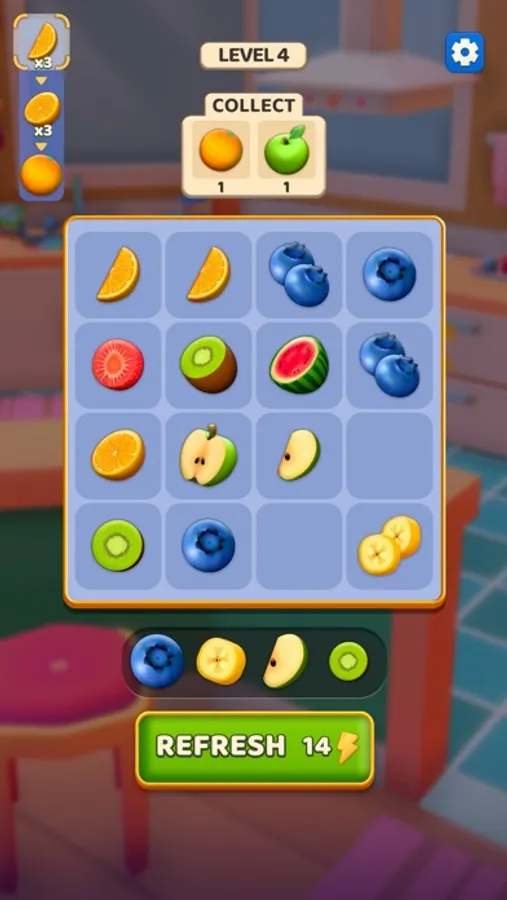 Find new fruits, choose wisely. Merge three pieces, then merge 3 bigger pieces to make full fruit. Complete your objectives to pass levels. Beat others at leaderboard and increase your skills to move forward. It is relaxing, easy to learn and very fun puzzle game. Very new concept. Hundreds of fresh levels waiting for you to play them.