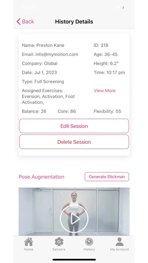 Motion specialists screen a client using the MyMotion Business App. Three targeted exercises are presented as a result of the screening process, processed by the revolutionary MyMotion "human code" and AI.