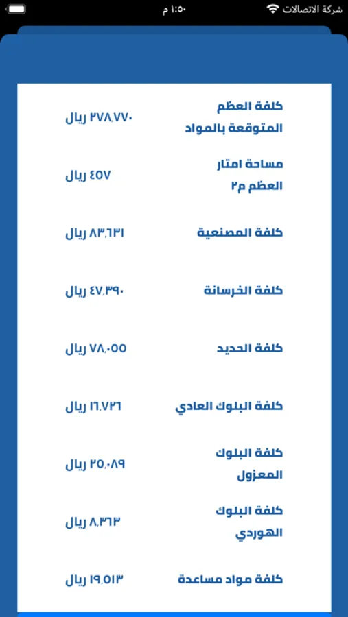 " هذا التطبيق يحسب تكلفة العظم المواد منها
