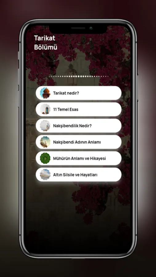 İçeriğinde; Tasavvufi bilgiler, Silsile , Hayrat , Nakşibendi Evradı , Esma-ı Nebi , zan Vakitleri ,Kaza namazları ,Kuran-ı Kerim ,Zikirmatik , Vakit sureleri , Ayarlar , Paylaşımlar, Dergah Bilgileri bulunmaktadır