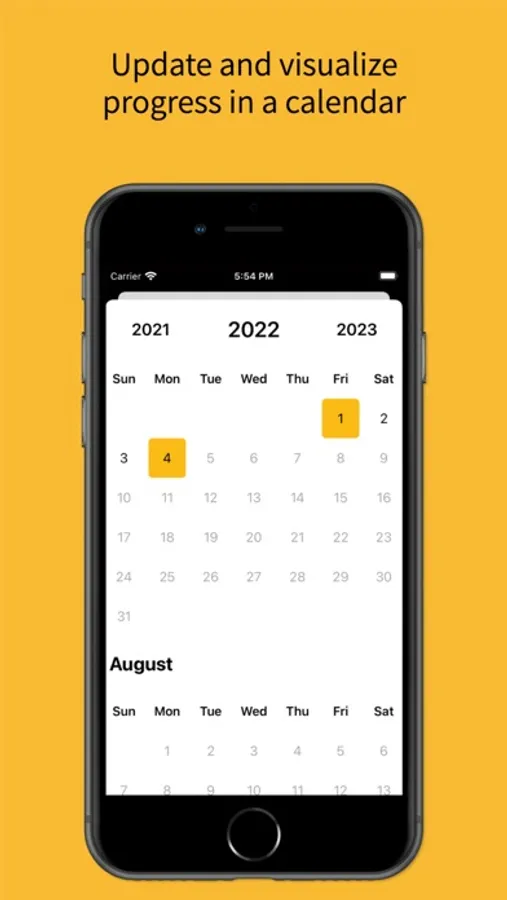 - You can mark your activities on an intuitive calendar within the app. Scroll back to previous dates to see a clear history of your activities.