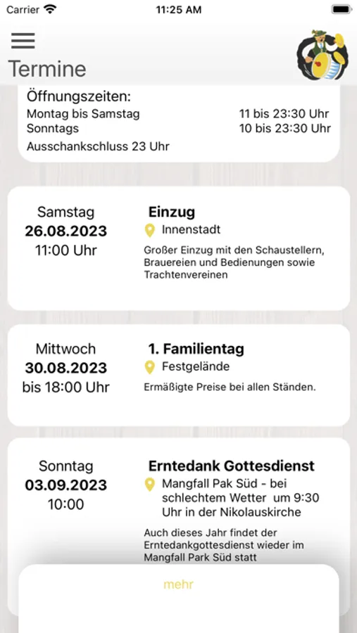 Schaut nach, wo an welchem Tag welche Musikkapelle spielt, wann der Bus zur Wiesn fährt und