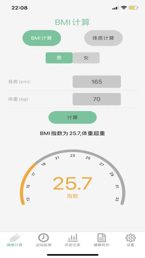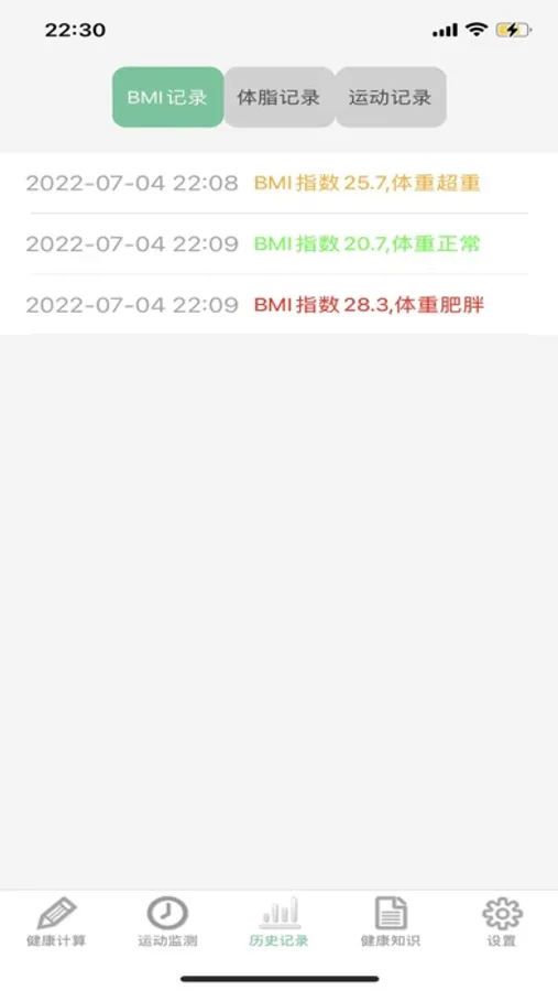 体重健康监控是一款轻巧的体重bmi计算,体脂计算的工具。
