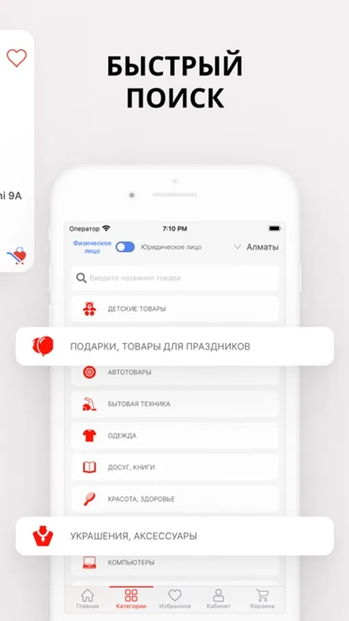 Для удобства наших клиентов, в приложении вы можете выбрать один из двух типов покупателей, а именно - Физическое лицо, либо Юридическое лицо.