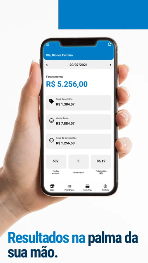 - Informações sobre as vendas com: quantidade de vendas emitidas, faturamento, devoluções, descontos, ticket médio e cesta média.